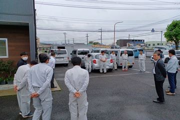 5月12日(月)に車両点検を行い、終了後に安全についての朝礼を行いました🚙✨